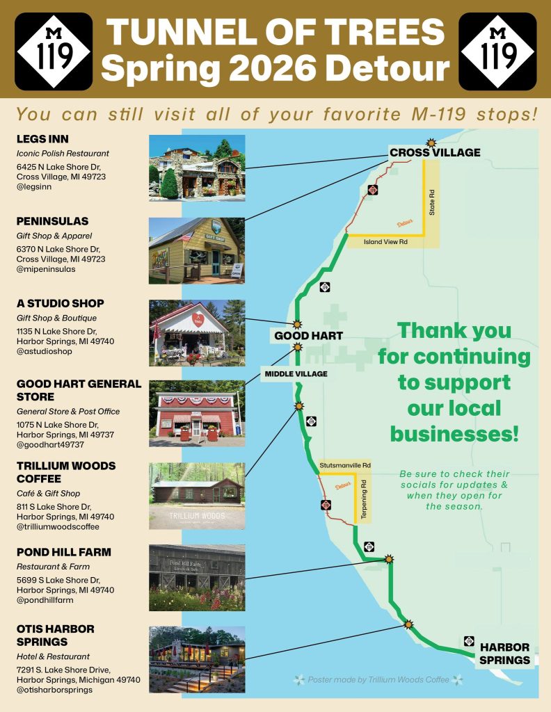 Although not officially part of the Lake Michigan Circle Tour which takes travelers along US-31 from Petoskey to Mackinaw City, M-119 is a more scenic alternate route along the Lake Michigan shoreline.